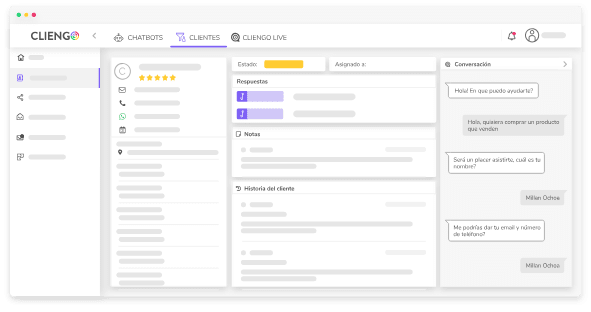 Integra automáticamente en el CRM de Cliengo o en el que estés utilizando toda la información y consultas de los clientes que conversen contigo por medio del chatbot, WhatsApp o los formularios de tu web, para compartirla con todo tu equipo comercial y realizar un mejor seguimiento de tus ventas.
